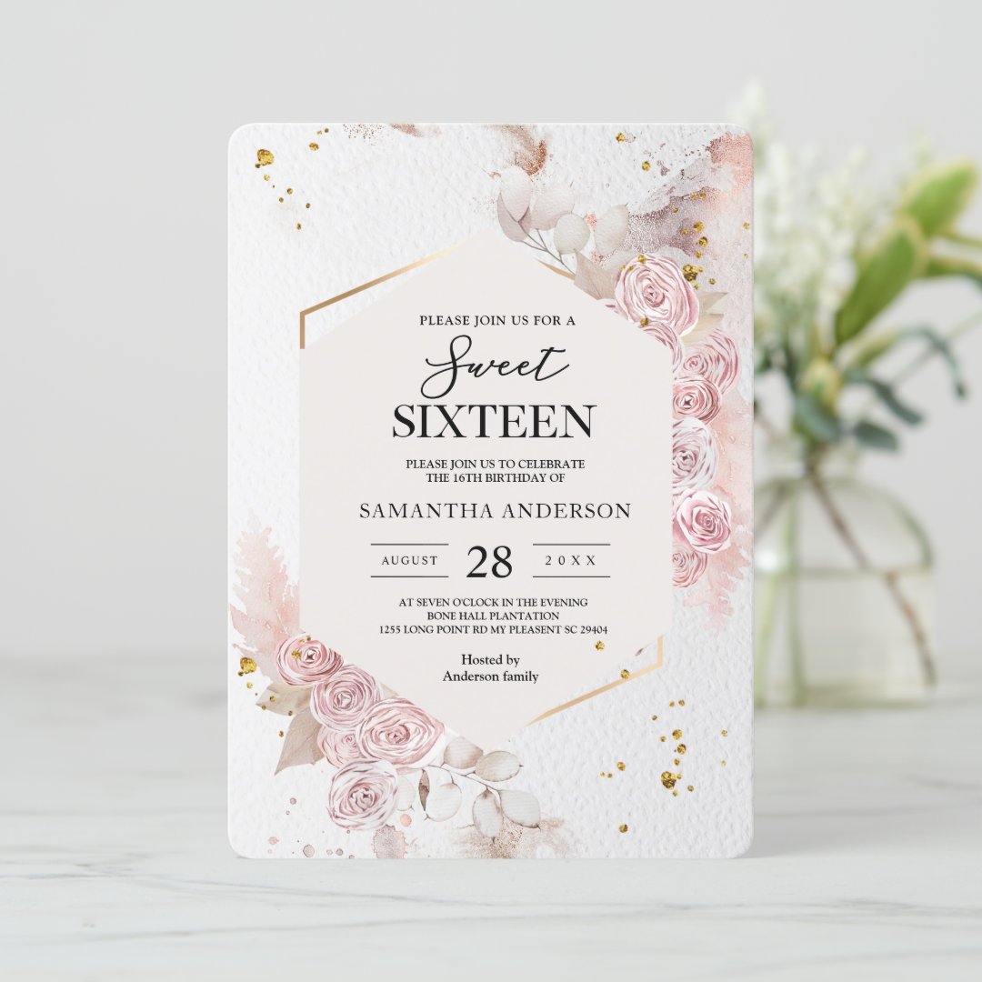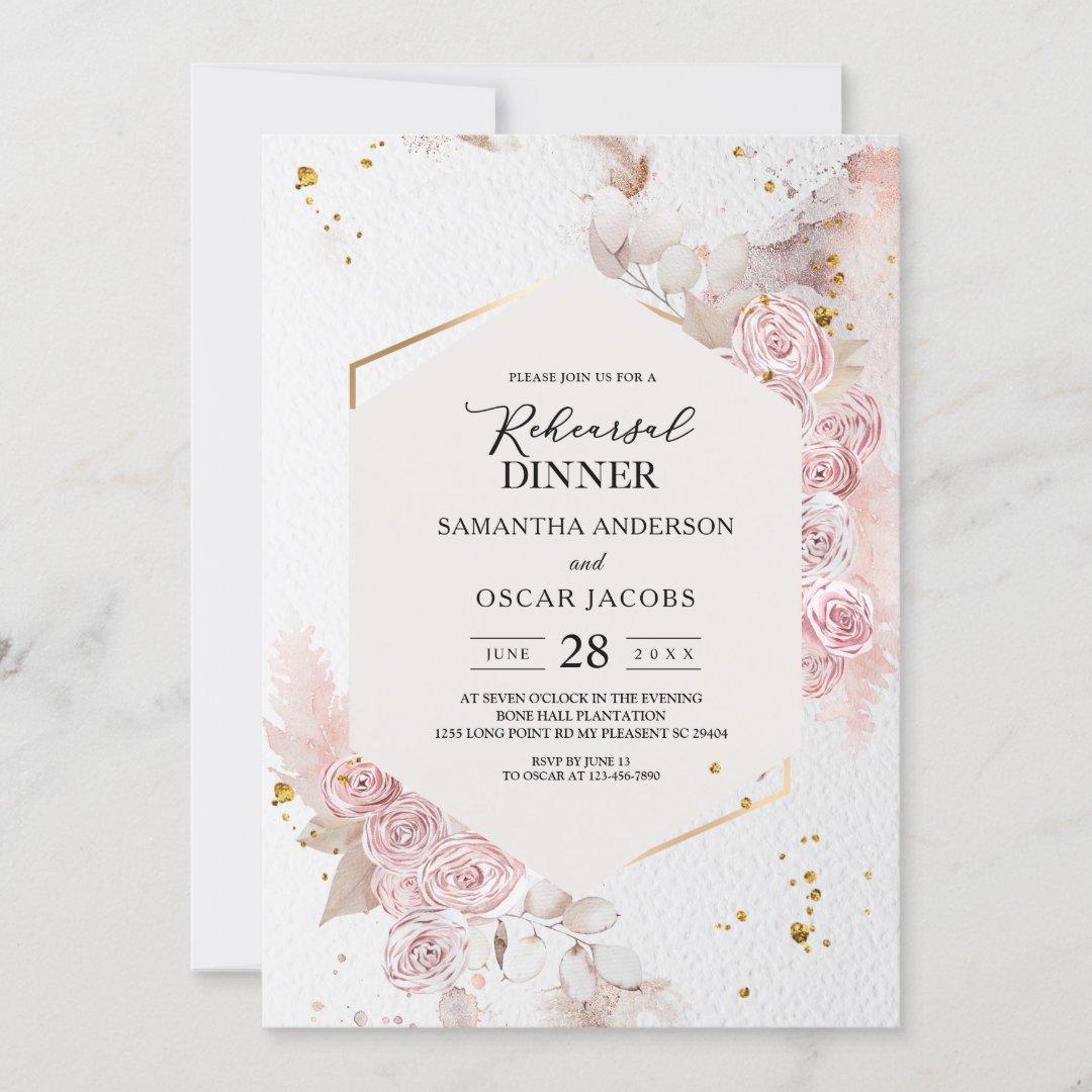 Elegant Pastel Pink Floral Frame Fancy Invitation | Zazzle