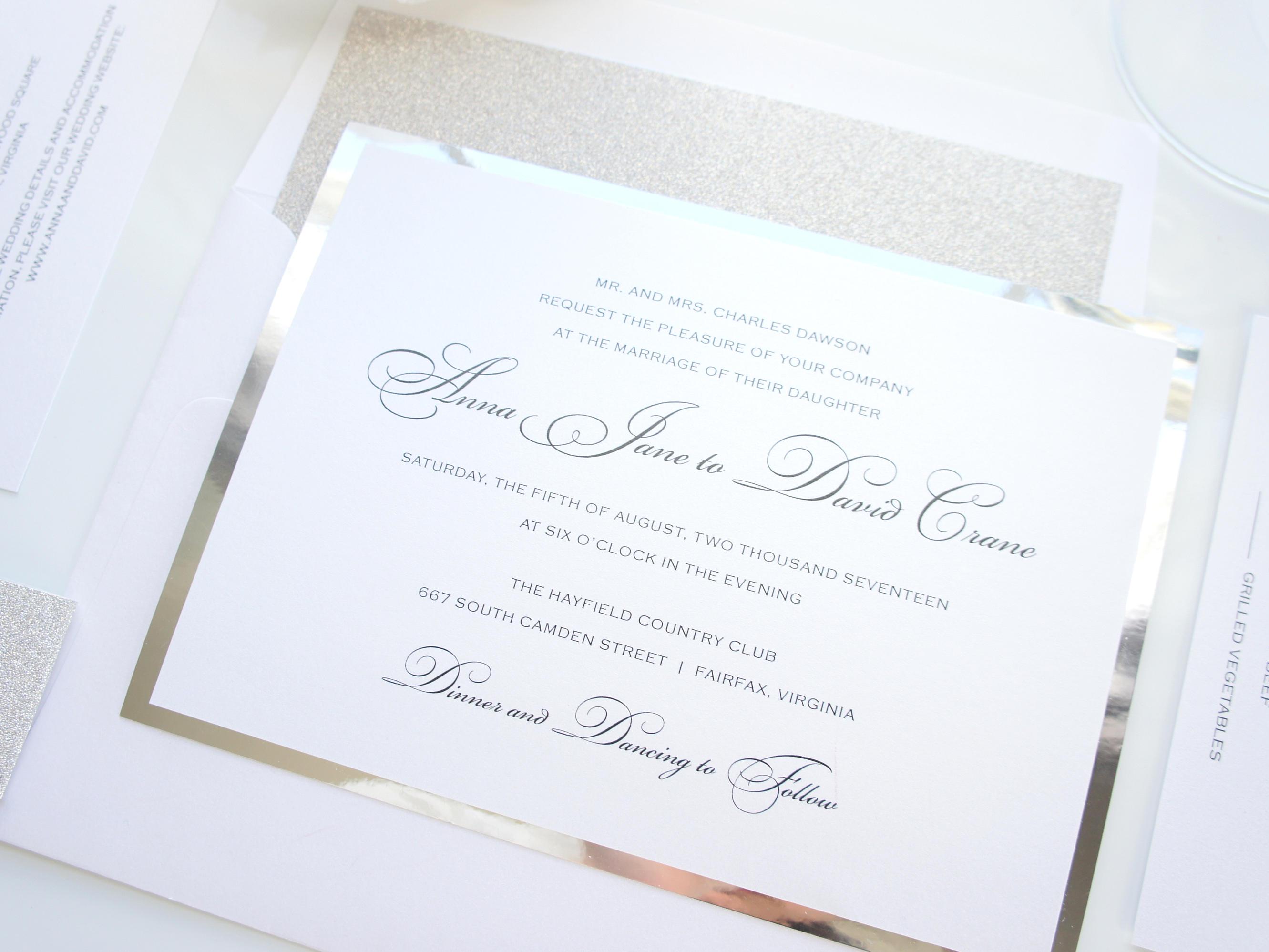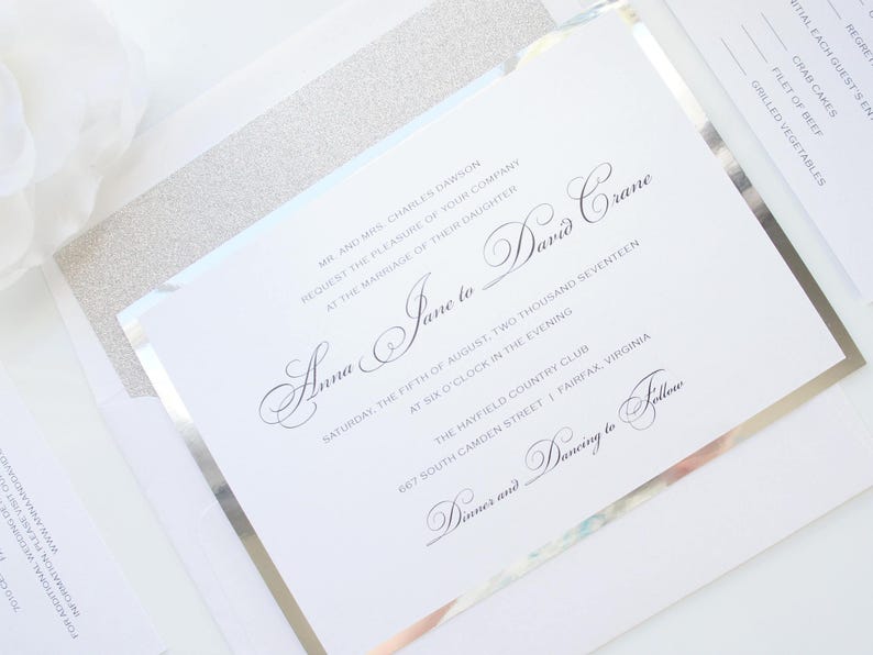 Silver Glitter Wedding Invitation Elegant Wedding Invitation Printed ...