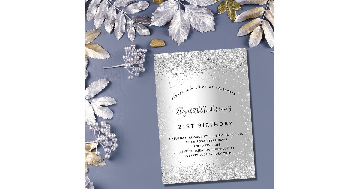 Silver glitter party elegant luxury birthday invitation | Zazzle