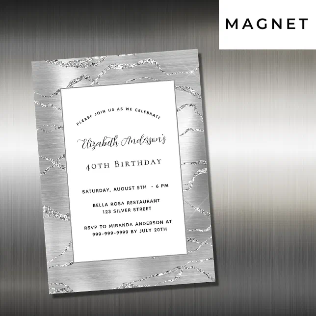Birthday silver white elegant luxury magnetic invitation | Zazzle