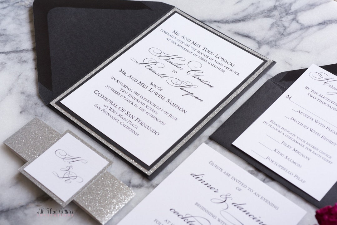 Fancy Wedding Invitation With Glitter, Glitter Bellyband and Envelopes ...