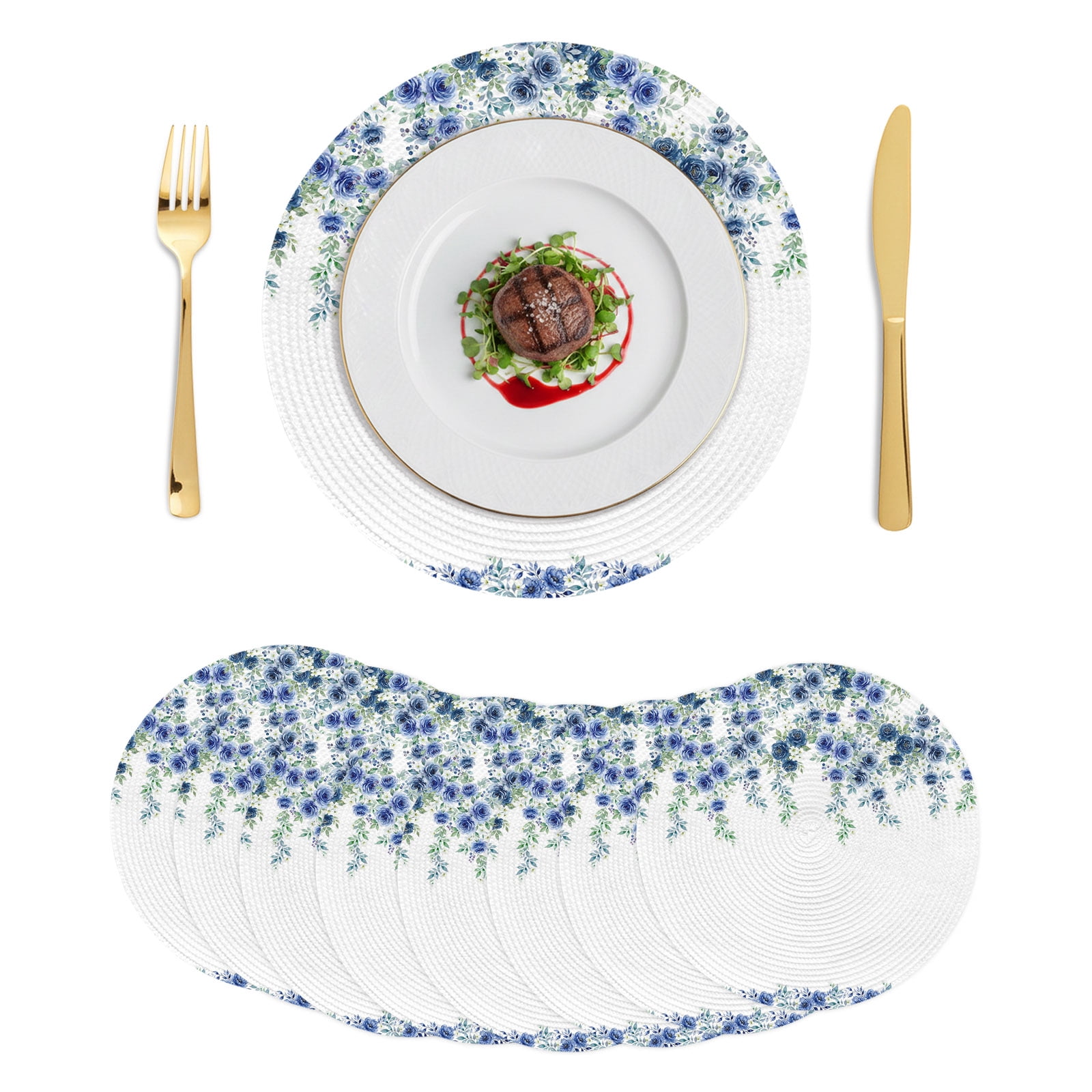 Blue Roses Round Placemats Set of 8 Spring Floral Elegant Pastoral ...