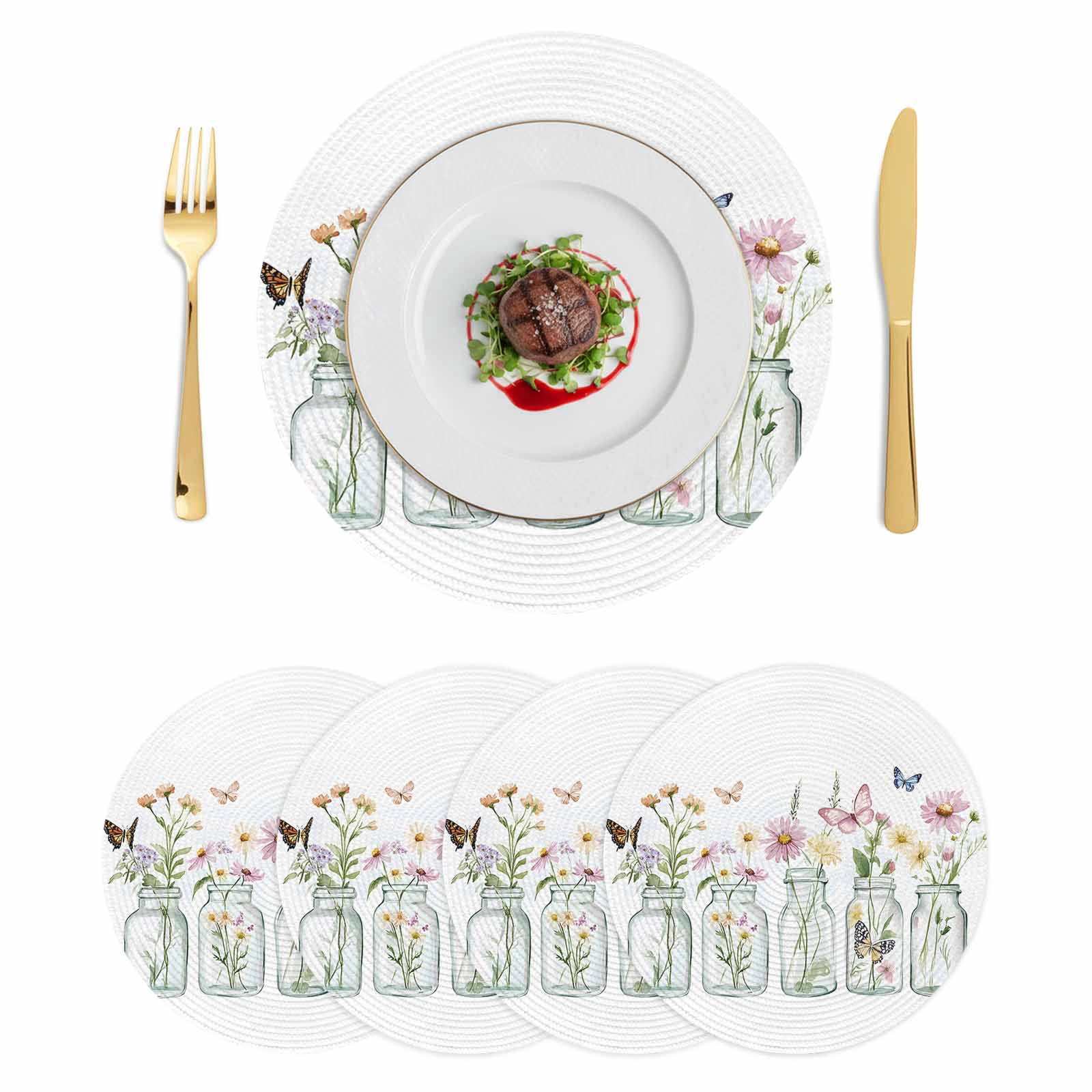 Colorful Flowers Round Placemats Set of 4 Spring Floral Elegant ...
