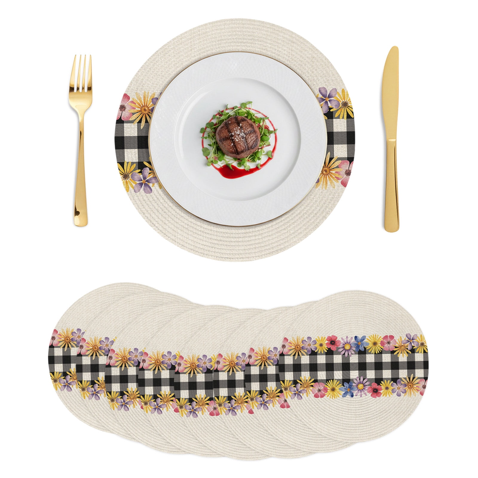 Colorful Flowers Round Placemats Set of 8 Spring Floral Elegant ...