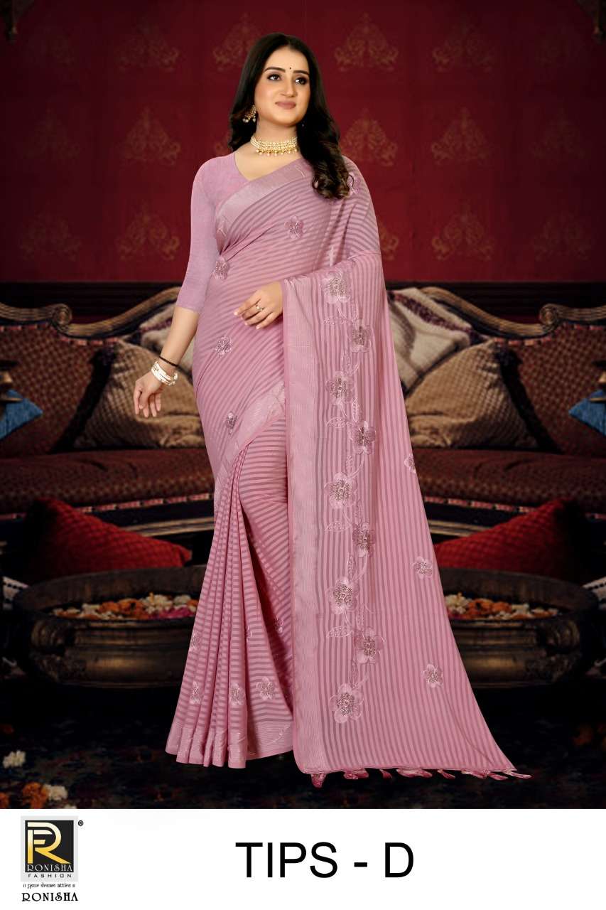 Ronisha Tips Catalog Fancy Thread Worked Sarees Wholesale