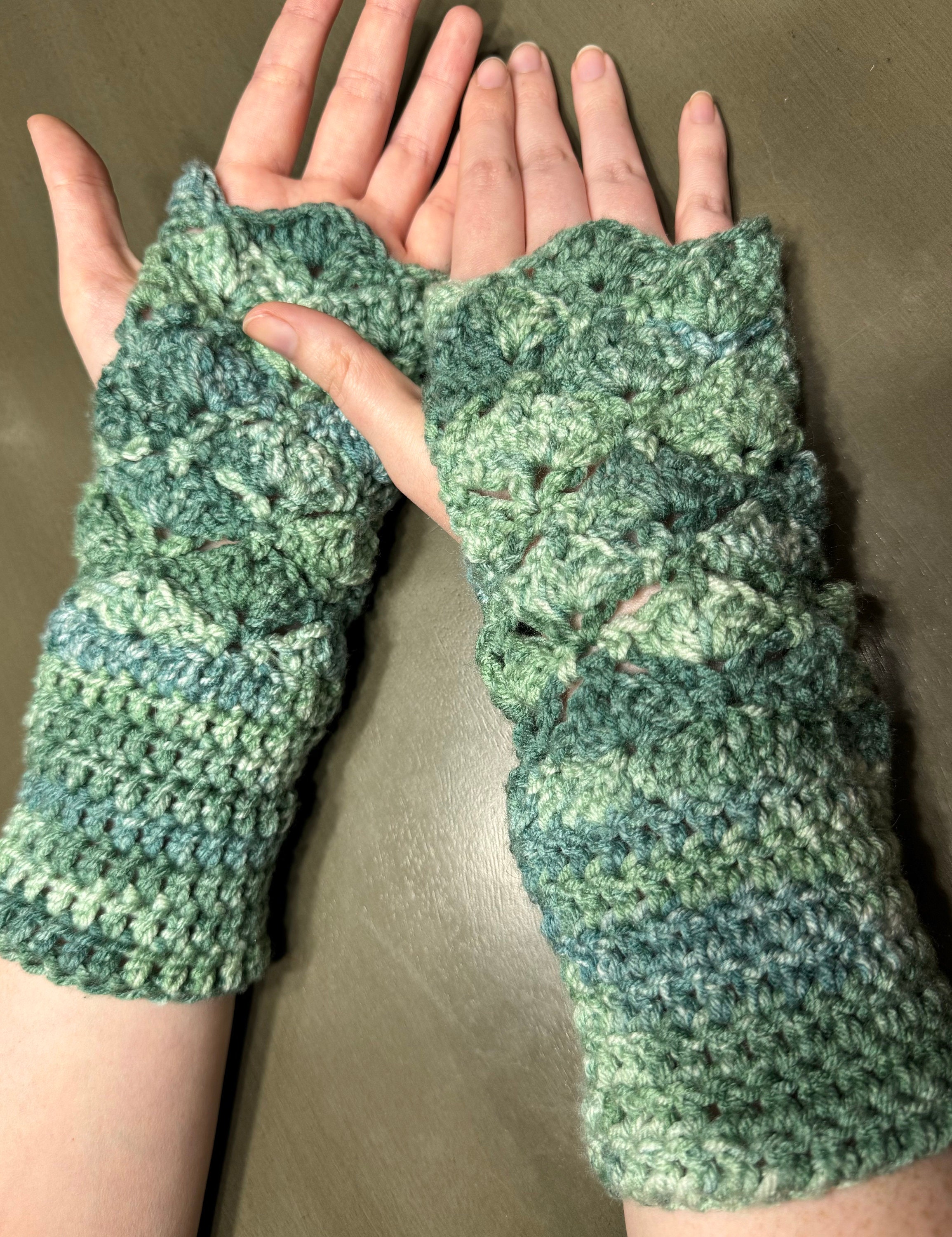 Crochet fantail shell stitch fingerless gloves free pattern – Artofit