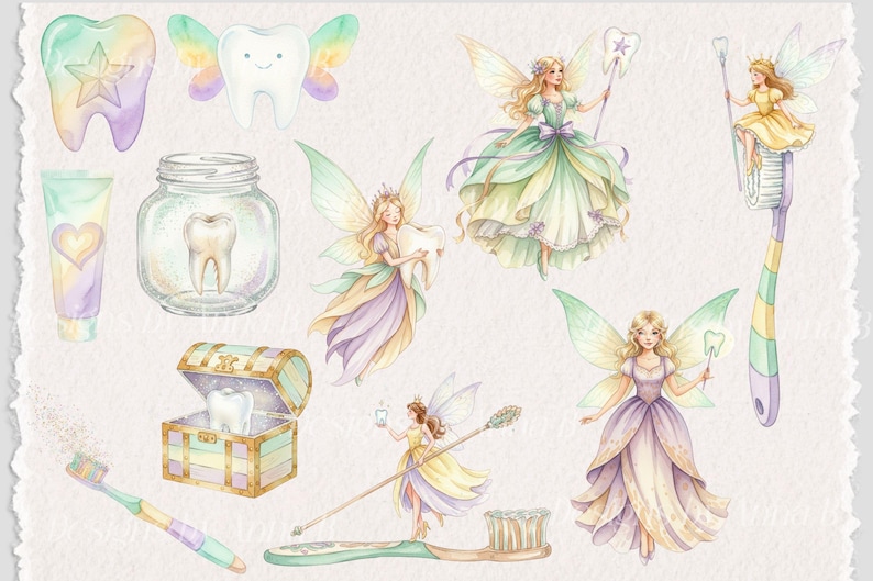 Tooth Fairy Clipart: Pastel Watercolor Fairies PNG Bundle (digital ...