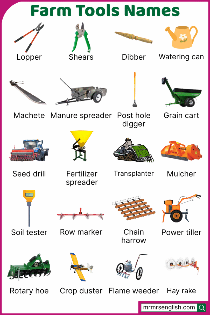 Farm Tools Names in English with Their Pictures - MR MRS ENGLISH
