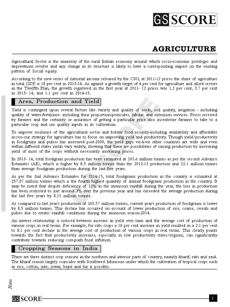 Agriculture - Key Notes | PDF | Agriculture | Intensive Farming
