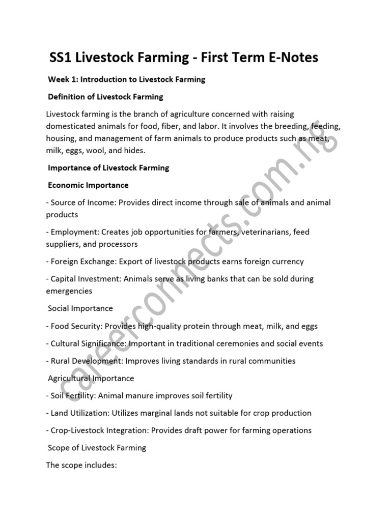 SS1 Livestock Farming Lecture Notes | PDF | Livestock | Agriculture