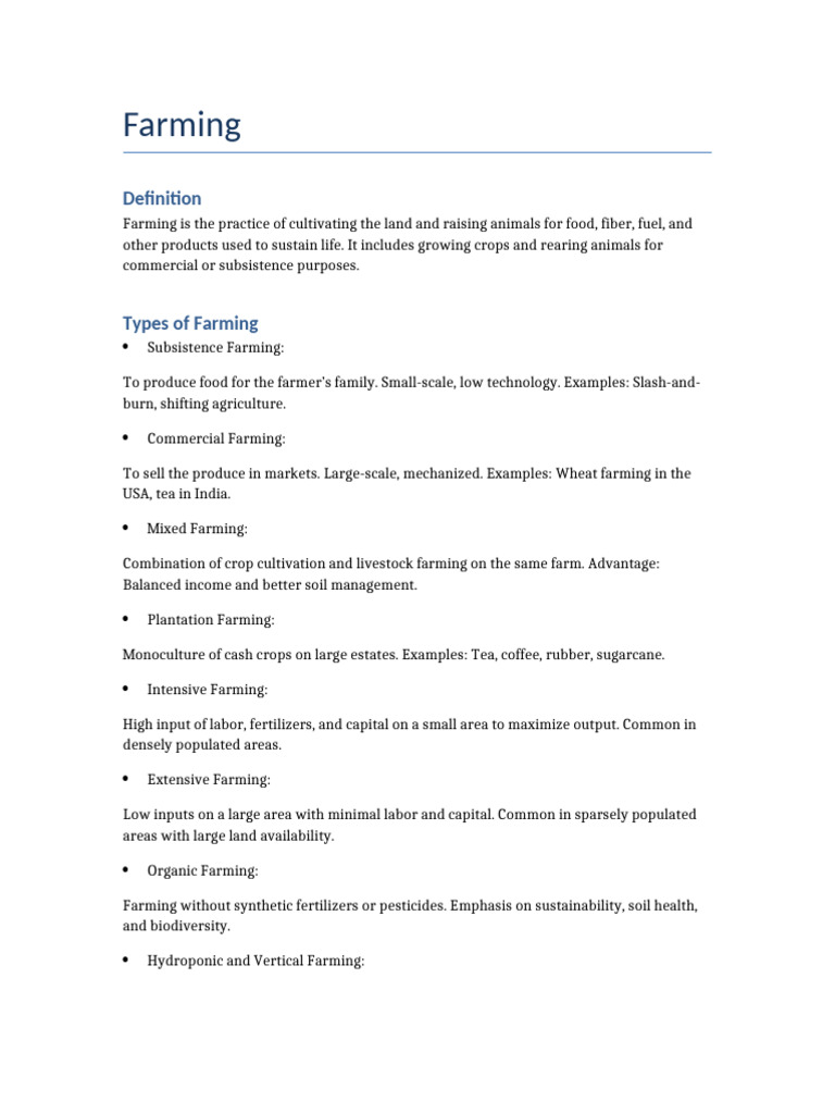 Types and Systems of Farming Explained | PDF | Agriculture | Cooperative