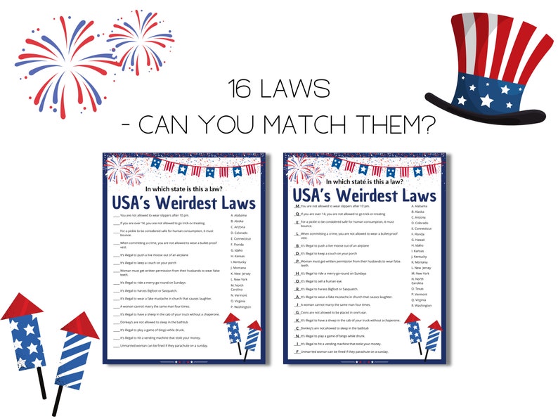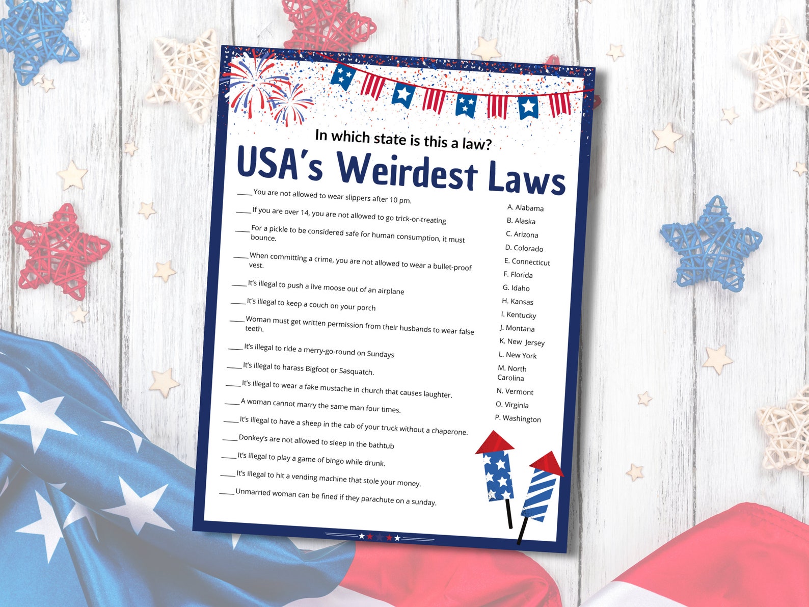 Usa's Weirdest Laws Printable Game, 4th of July Game, Independence Day ...