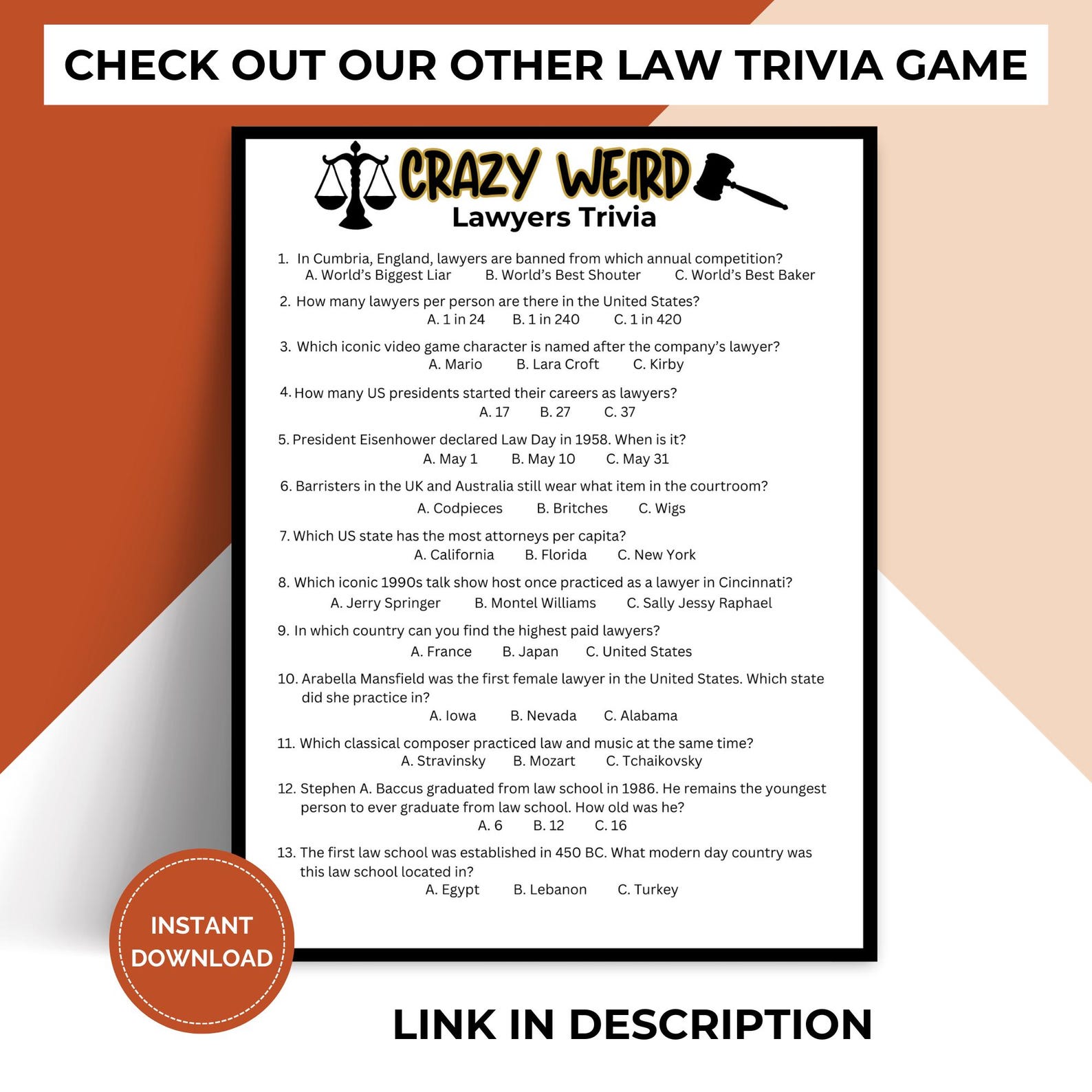 Printable Crazy Weird US Laws Trivia Game Perfect for Law School ...