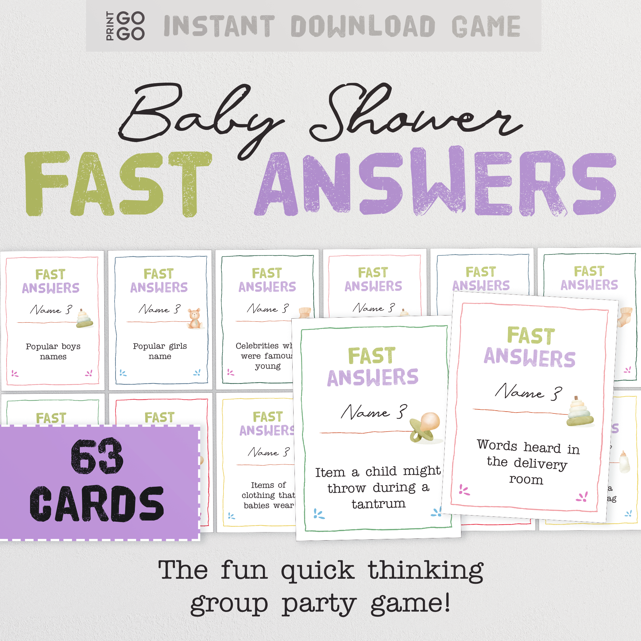 Baby Shower Fast Answers Game the Fun Quick Thinking Group Party Game ...