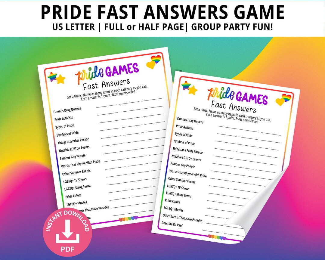 Pride Fast Answers Game, Pride Games, Pride Party Games, Pride 2025 ...