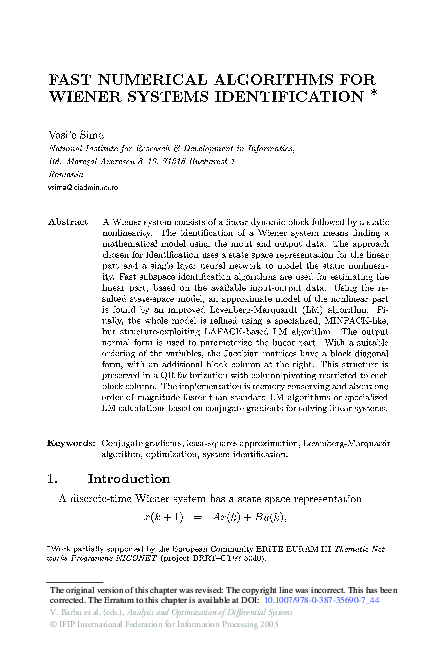 (PDF) Fast Numerical Algorithms for Wiener Systems Identification
