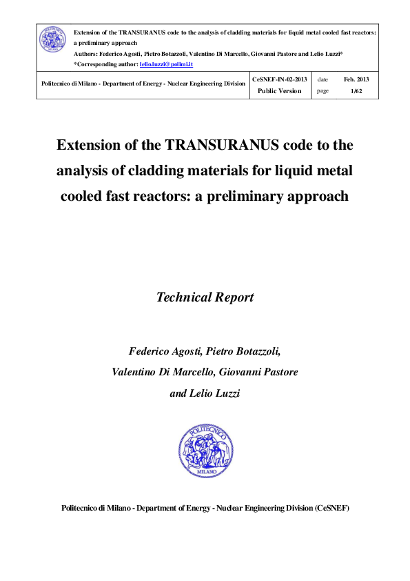 (PDF) Extension of the TRANSURANUS Code to the Analysis of Cladding ...