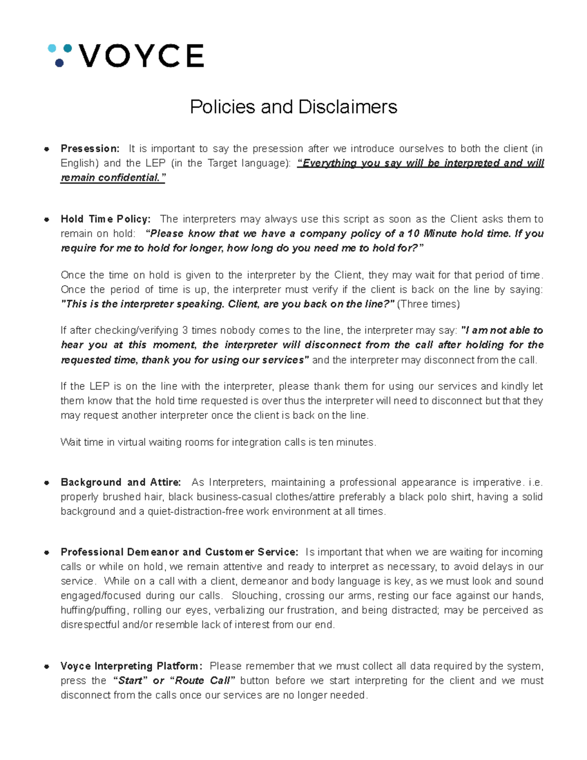 Policies and Disclaimers - ” Hold Time Policy: The interpreters may ...