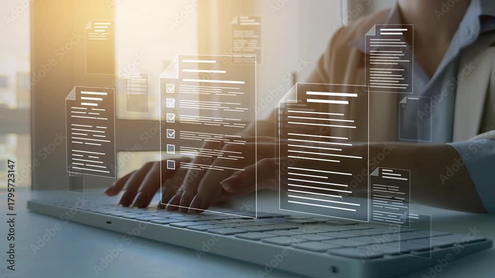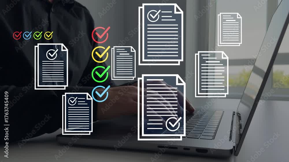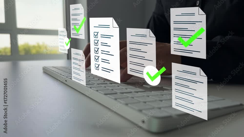 Fast checklist and clipboard task management.Businessman check virtual ...