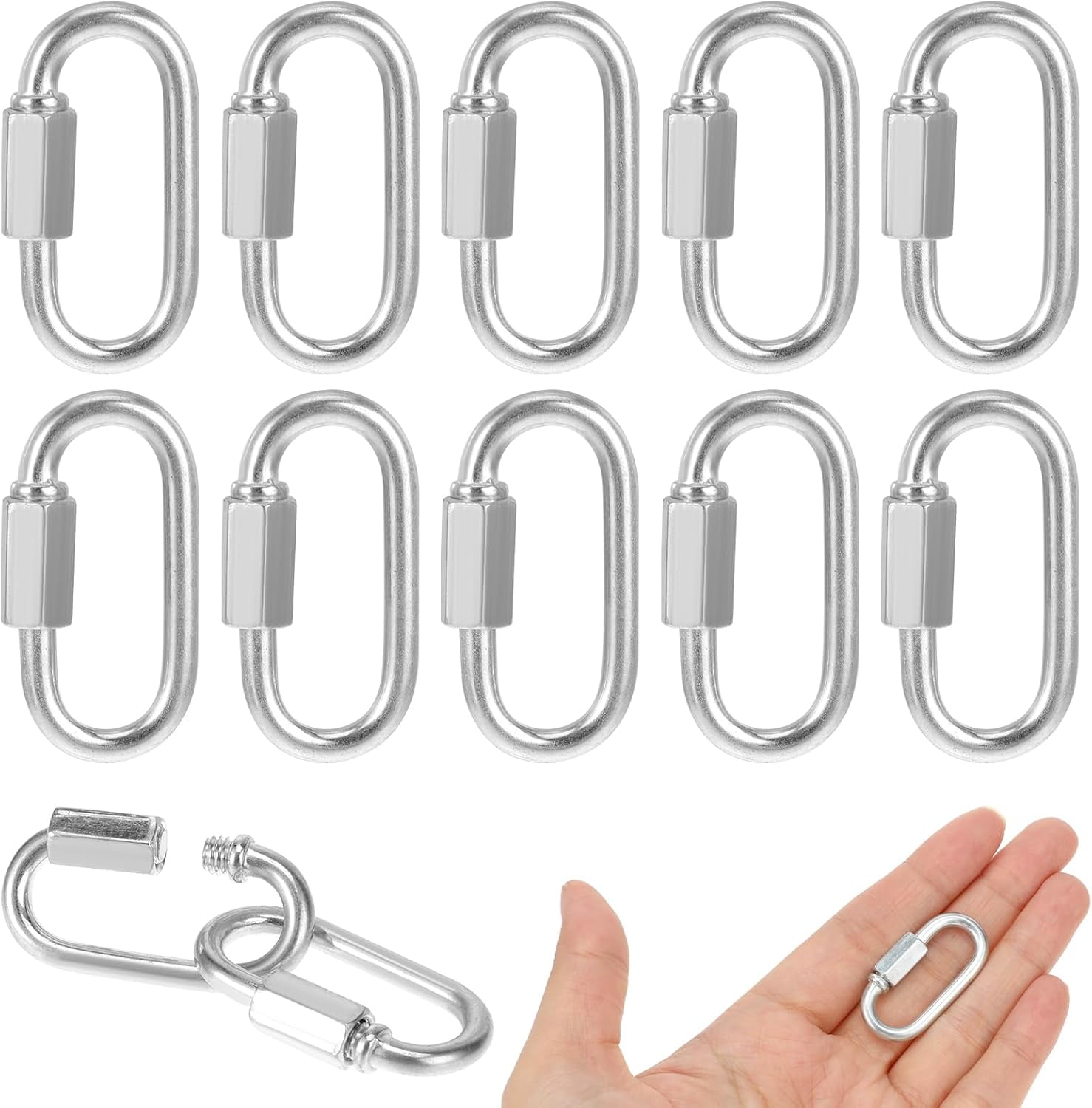XD4-10 Pack 1/8 Inch Chain Quick Links Heavy Duty D Shape Chain Hooks ...