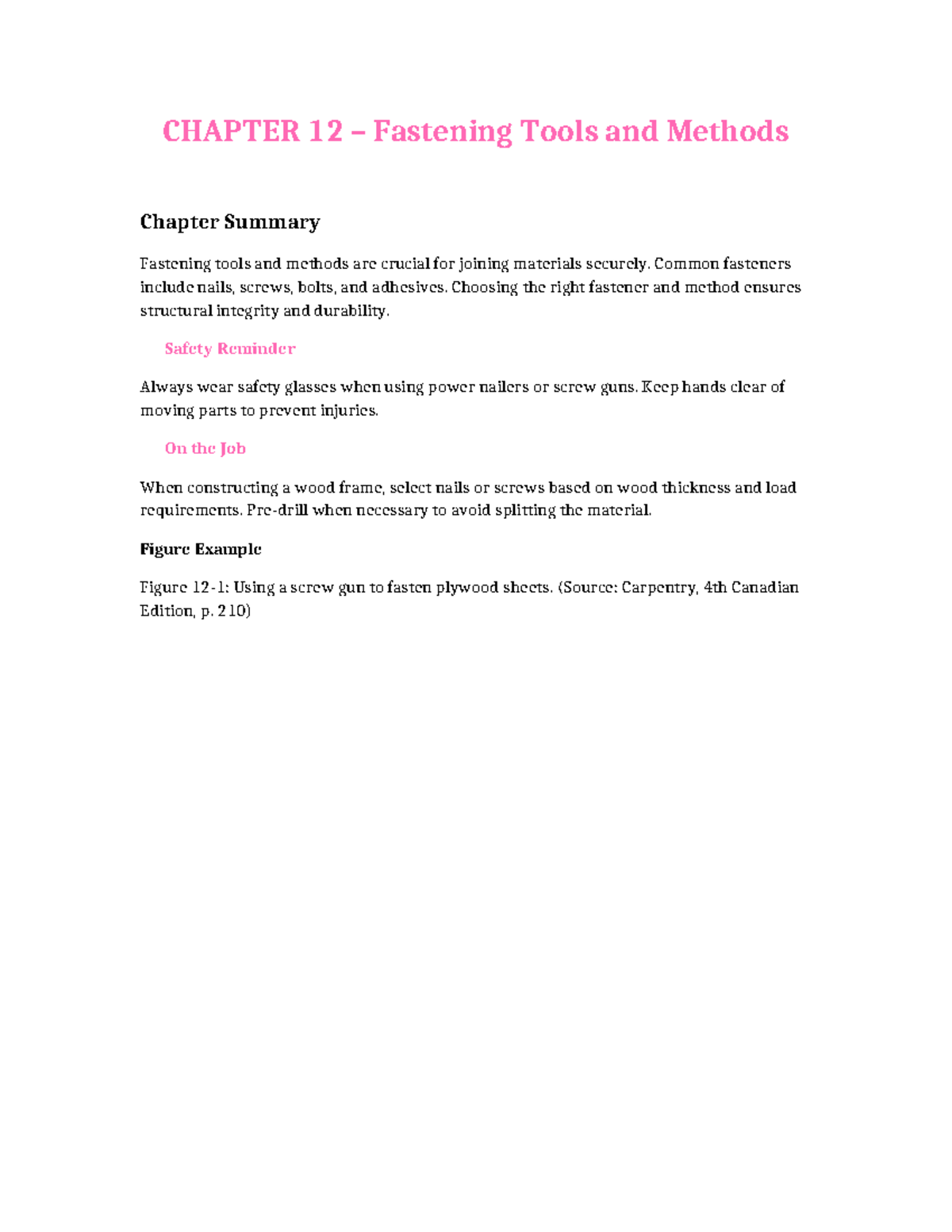 CHAPTER 12: Overview of Fastening Tools & Methods - Studocu