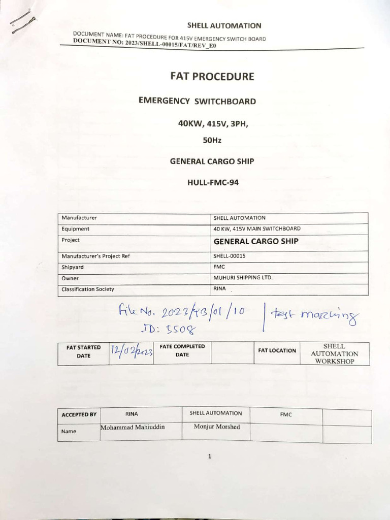 Factory Acceptance Test (FAT) Procedure & Checklist for Marshalling ...