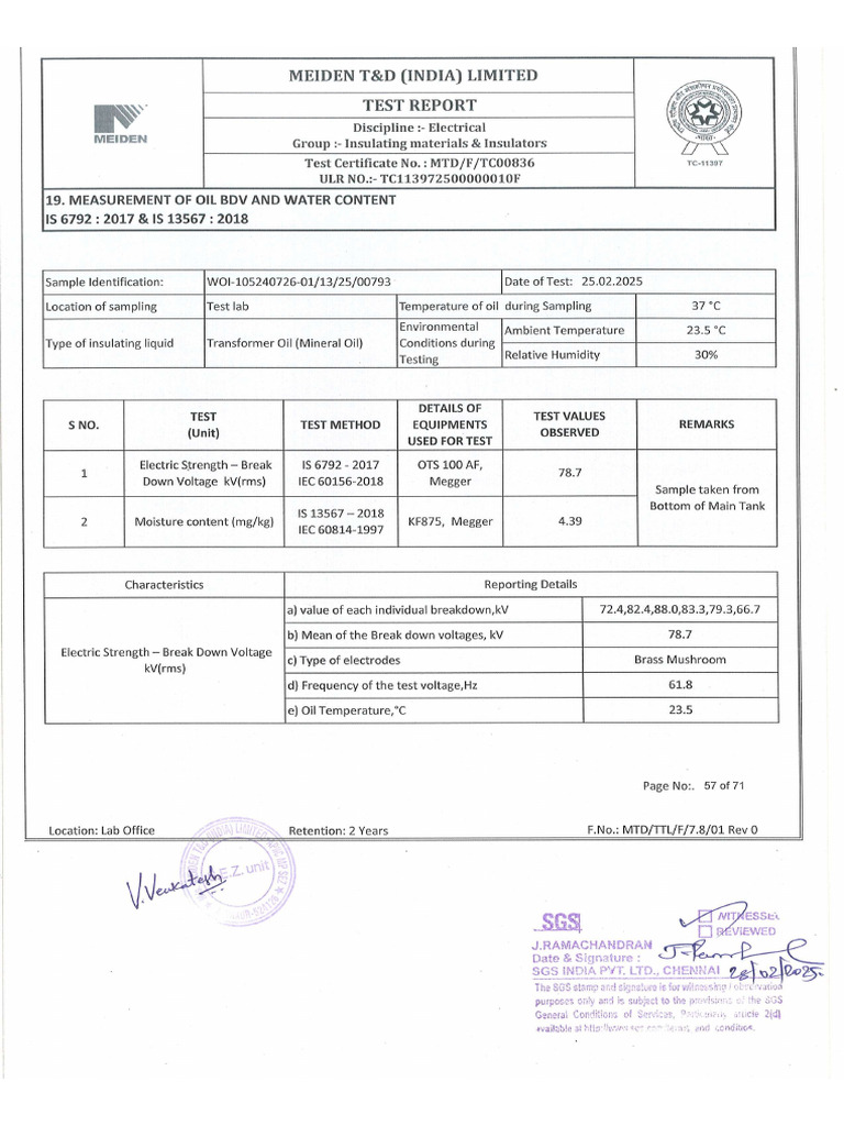 Oil Test Report in FAT Report As Per Test Method | PDF