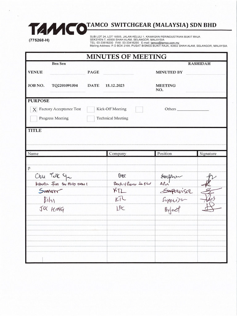 Factory Acceptance Test (FAT) Template | Free Download