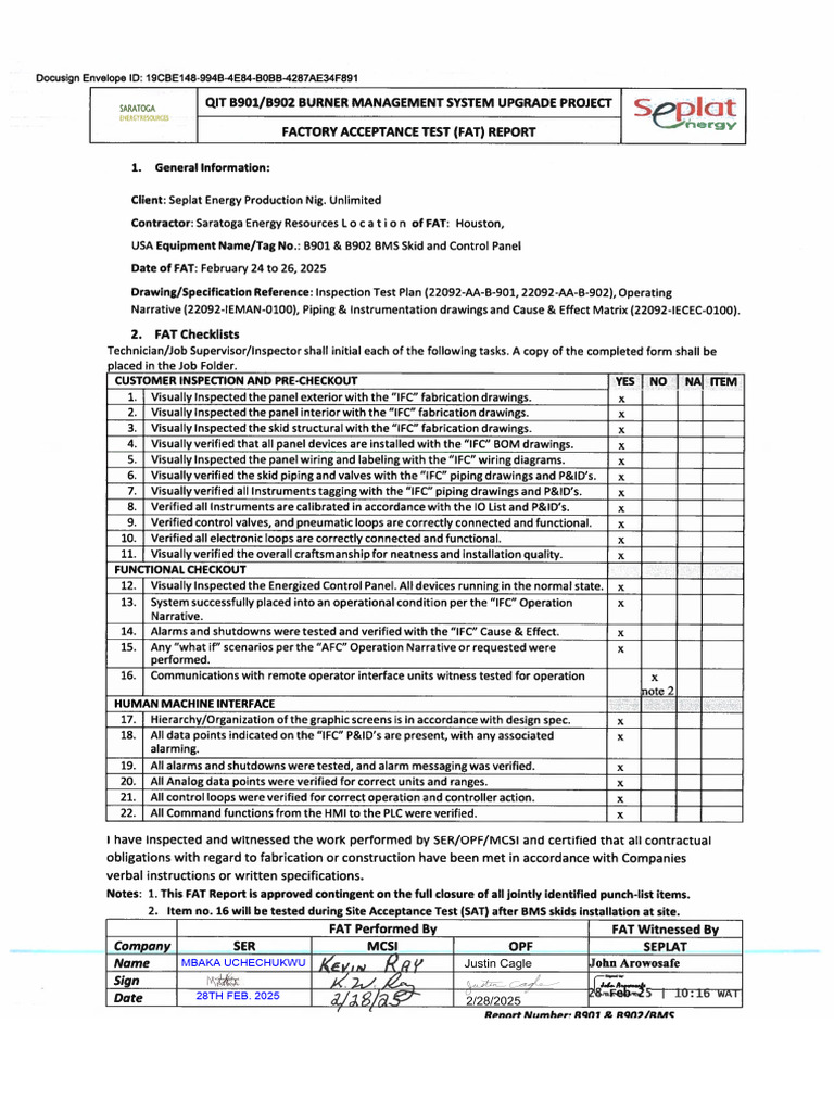 FAT Report - Signed | PDF