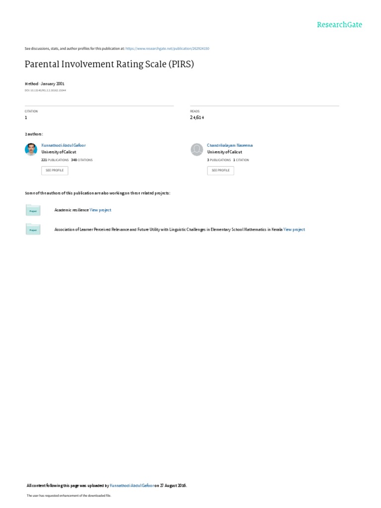 Parental Involvement Rating Scale (PIRS) | PDF | Validity (Statistics ...