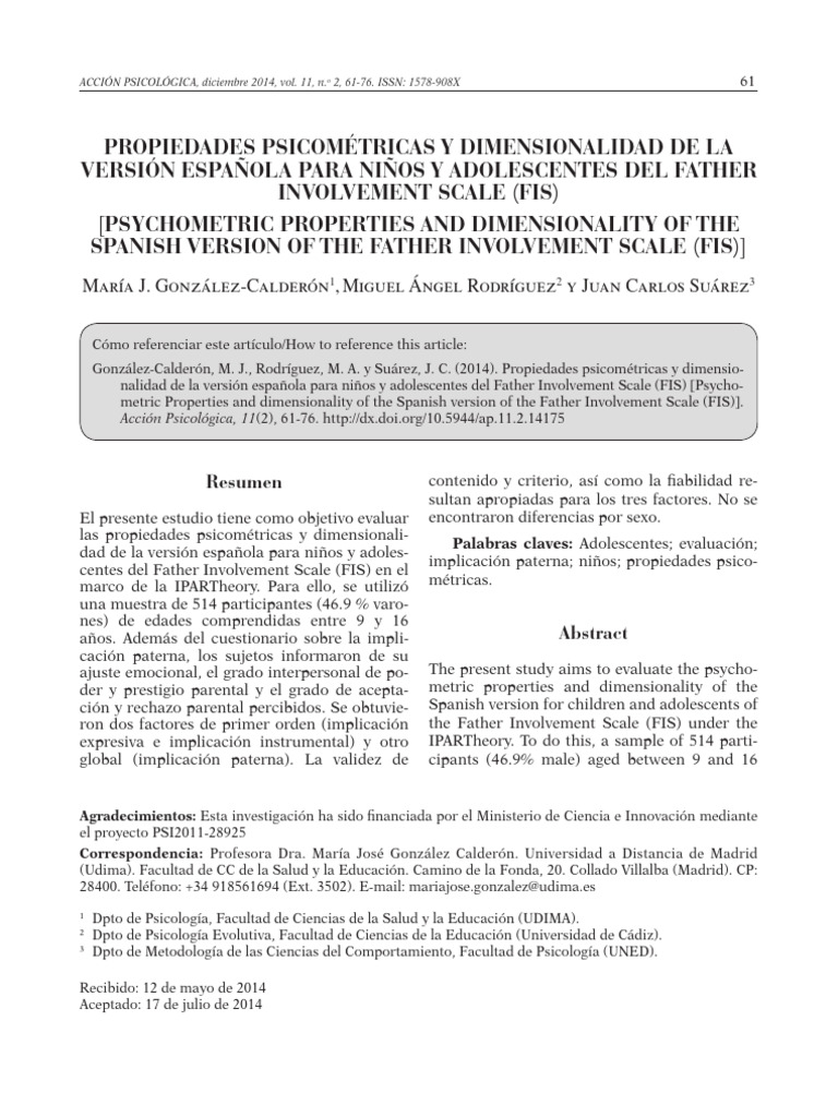 Evaluando la Implicación del Padre: Propiedades Psicométricas de la ...
