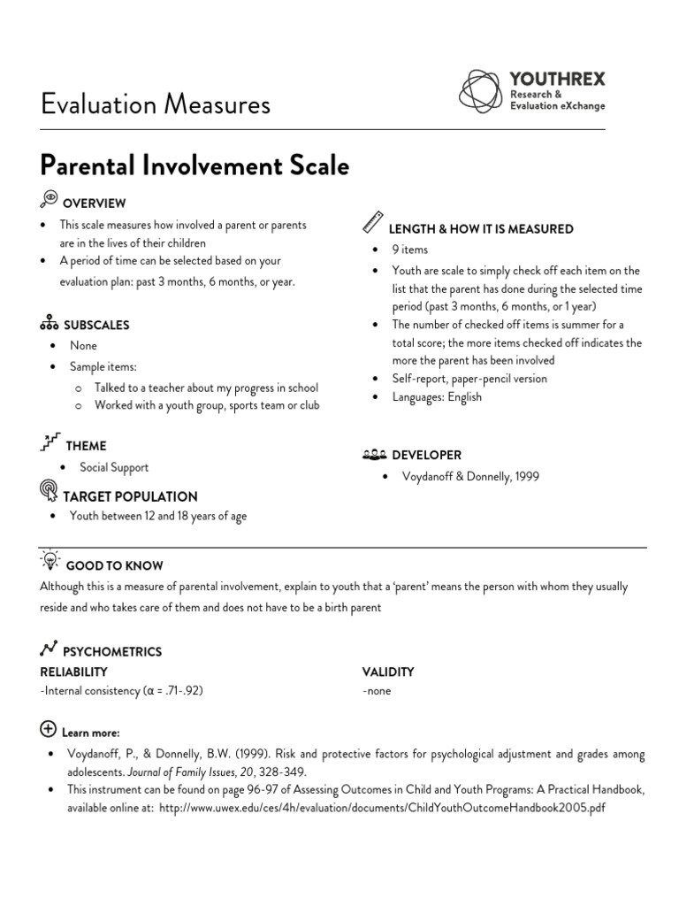 Parental Involvement Scale Overview | PDF | Psychometrics | Behavioural ...