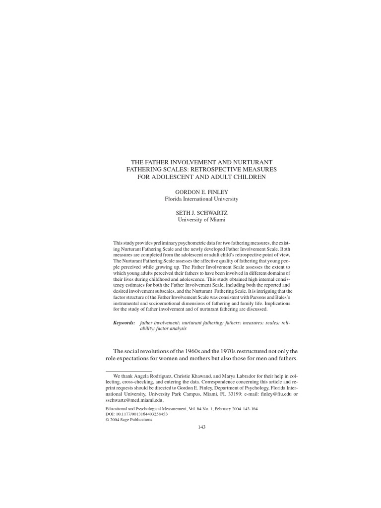 (PDF) The Father Involvement and Nurturant Fathering Scales ...