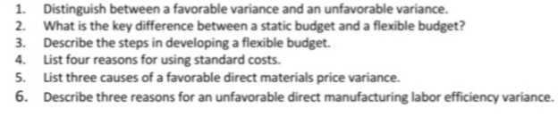 Solved 1. Distinguish between a favorable variance and an | Chegg.com