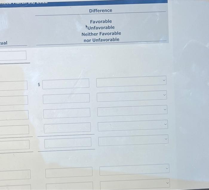 Solved Difference Favorable Unfavorable Neither Favorable | Chegg.com