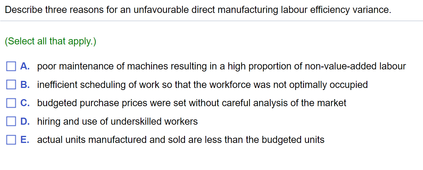 Solved 1) A favourable labour efficiency variance could | Chegg.com