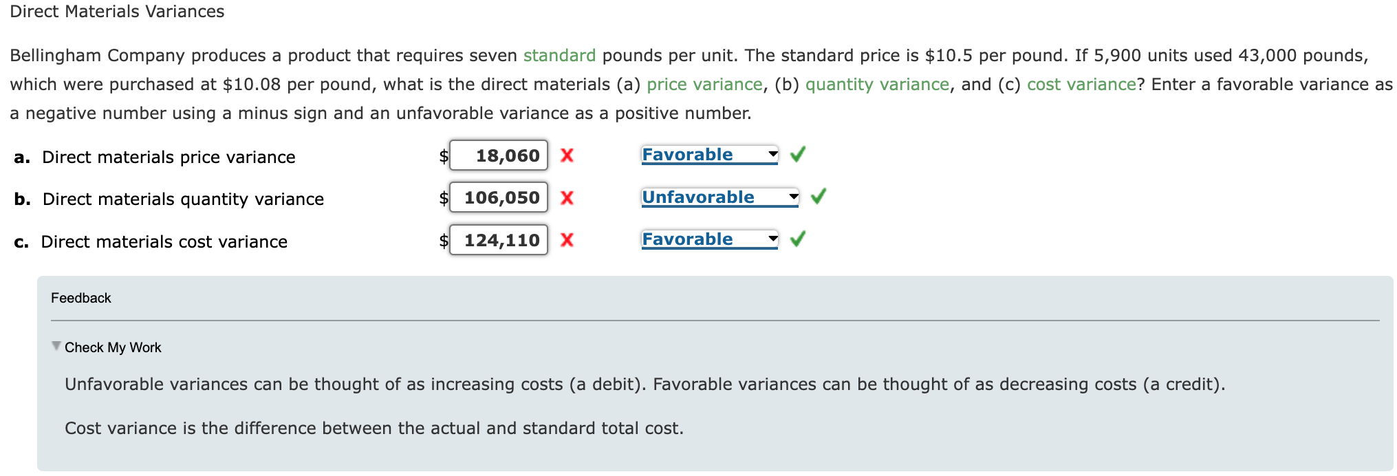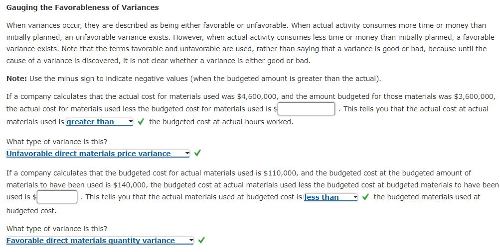 Solved FeedbackCheck My WorkUnfavorable variances can be | Chegg.com