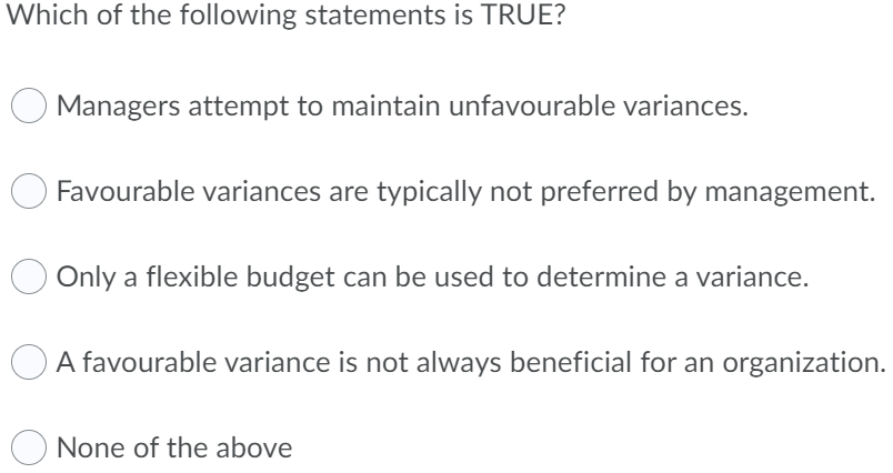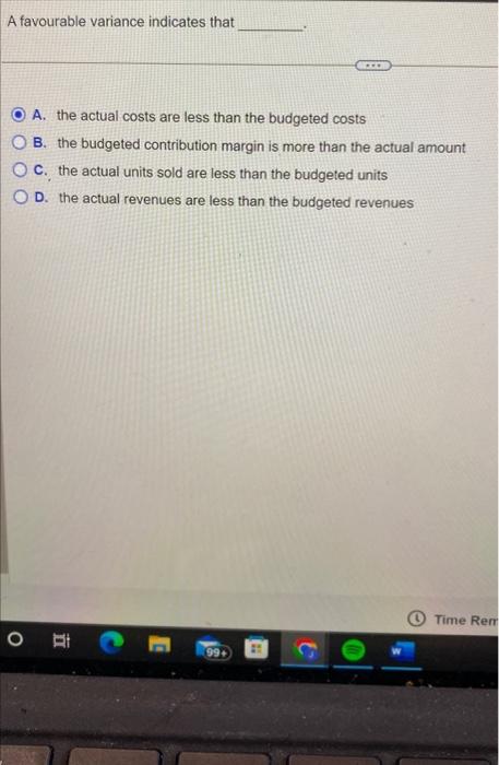 Solved A favourable variance indicates that A. the actual | Chegg.com