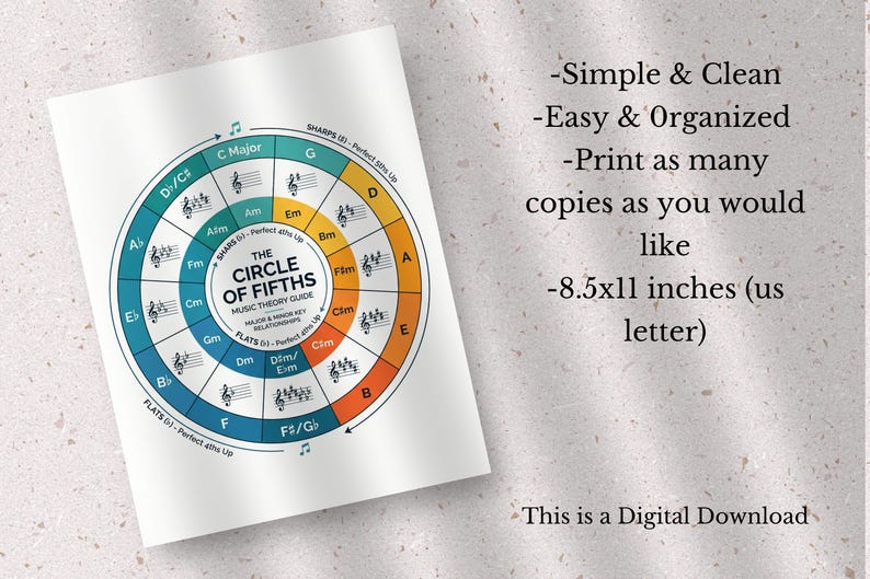 Circle of Fifths Music Theory Chart, Key Signatures Guide, Piano Guitar ...