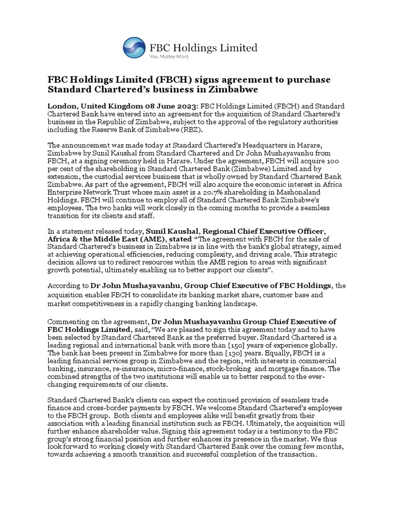 FBC Holdings Limited (FBCH) signs agreement to purchase Standard… | ABC ...