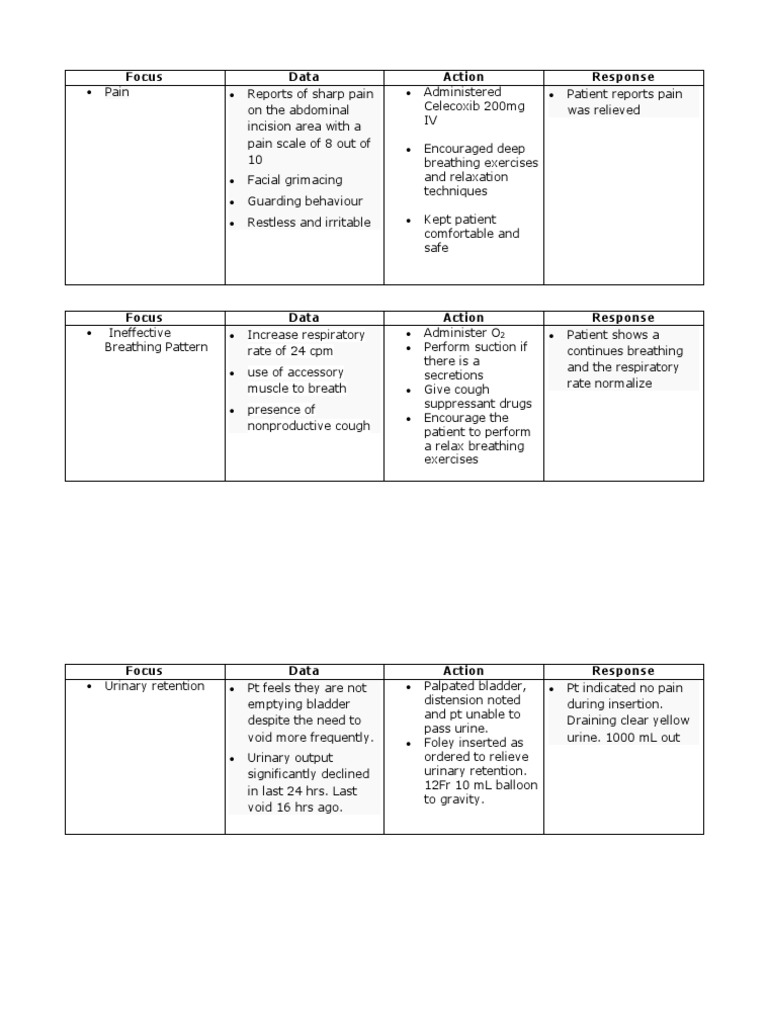 FDAR CHARTING POSTPARTUM, Nurse's Progress Notes | PDF | Urinary ...