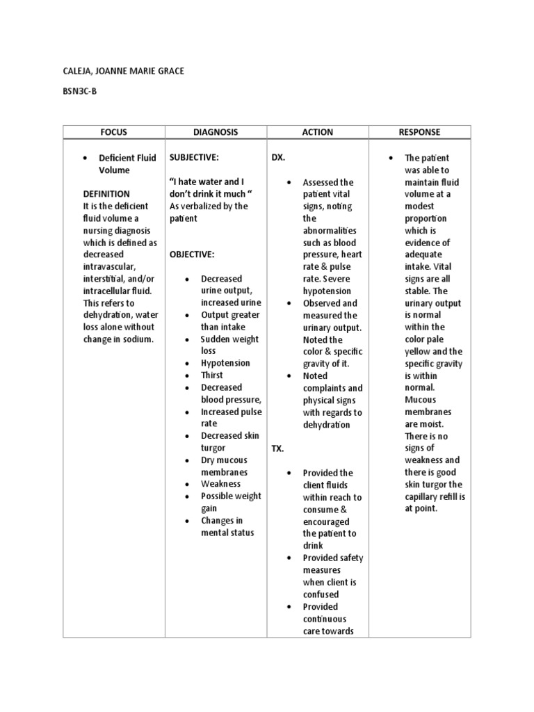 FDAR - Charting of Patient Fluid Deficit Management - Studocu