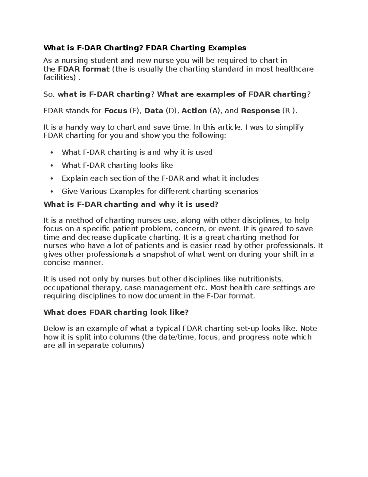 FDAR CHARTING 1 .docx - FDAR CHARTING. So what is F-DAR charting? What ...