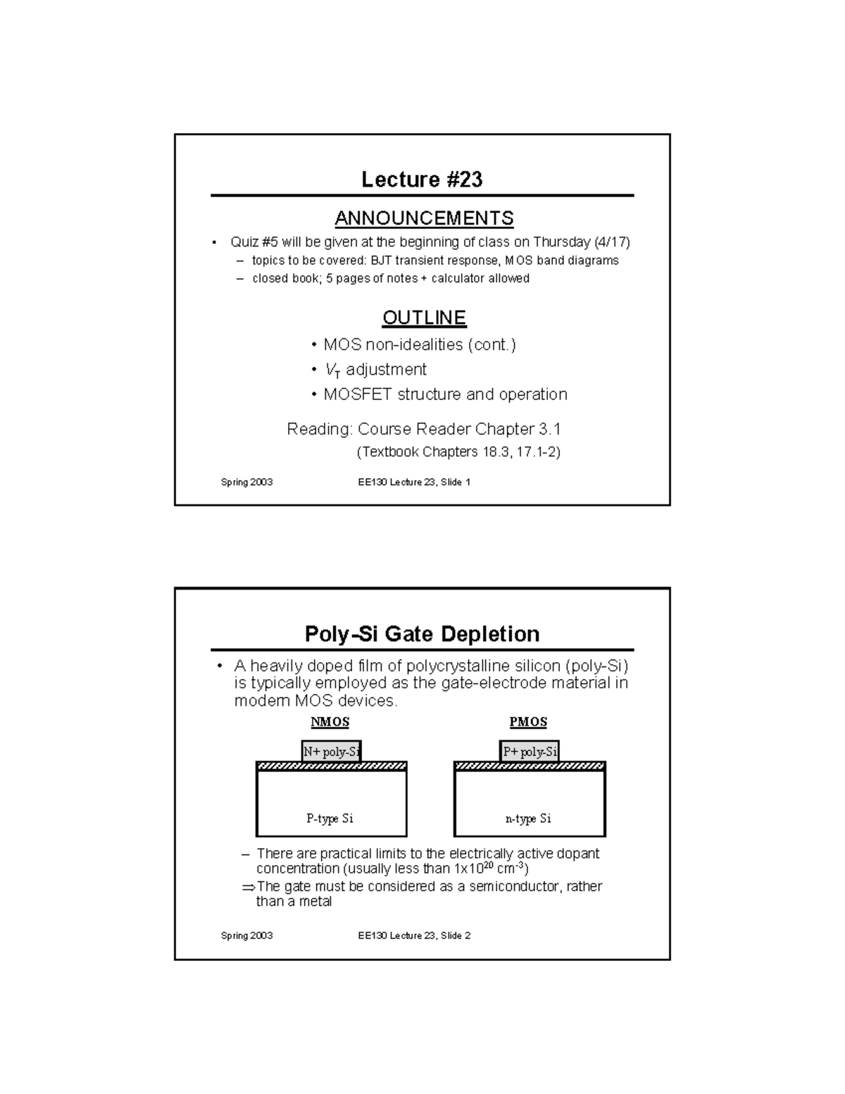 Lecture #23 - SL;FDKF - Spring 2003 EE130 Lecture 23, Slide 1 Lecture ...