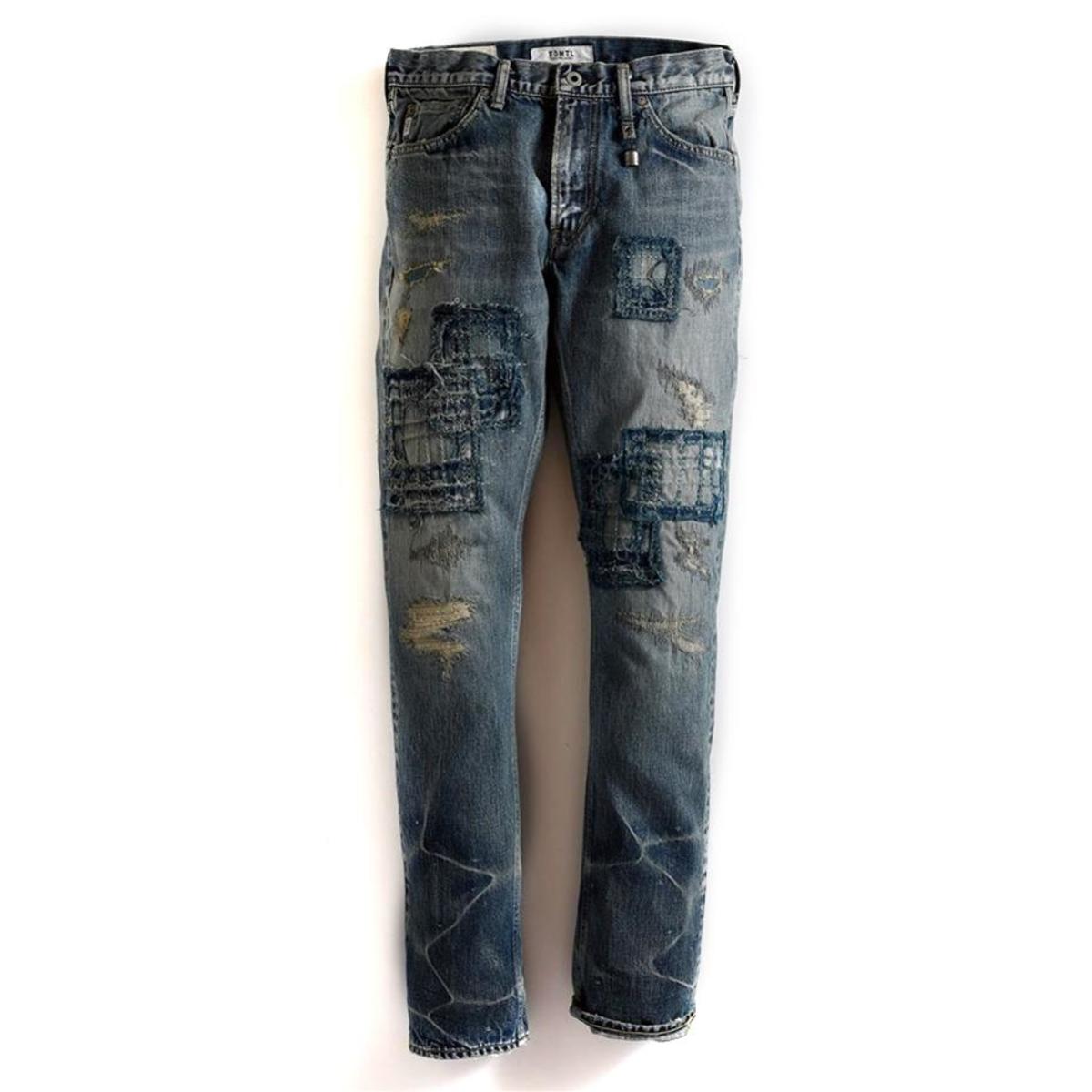 FDMTL Men's Slim Fit Straight Denim Jean in Indigo Patchwork FDMTL