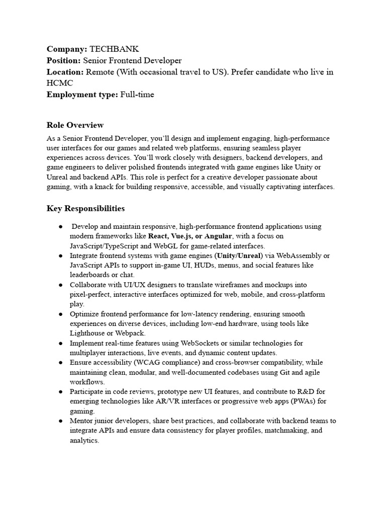 JD Techbank FE Developer | PDF | Web Gl | Computing
