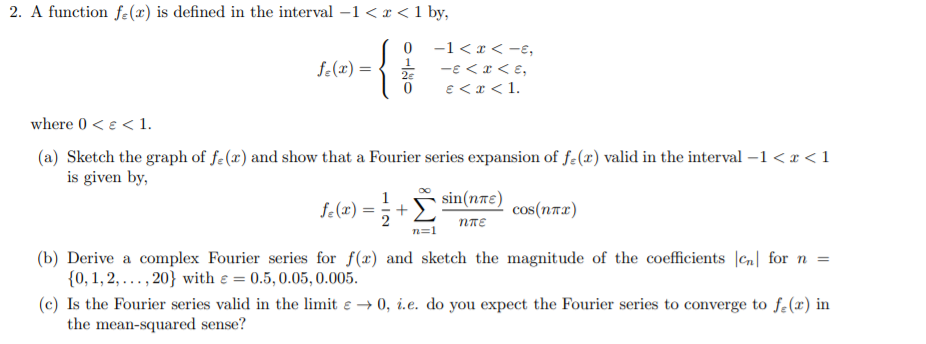 Solved 2. A function fe() is defined in the interval -1 | Chegg.com