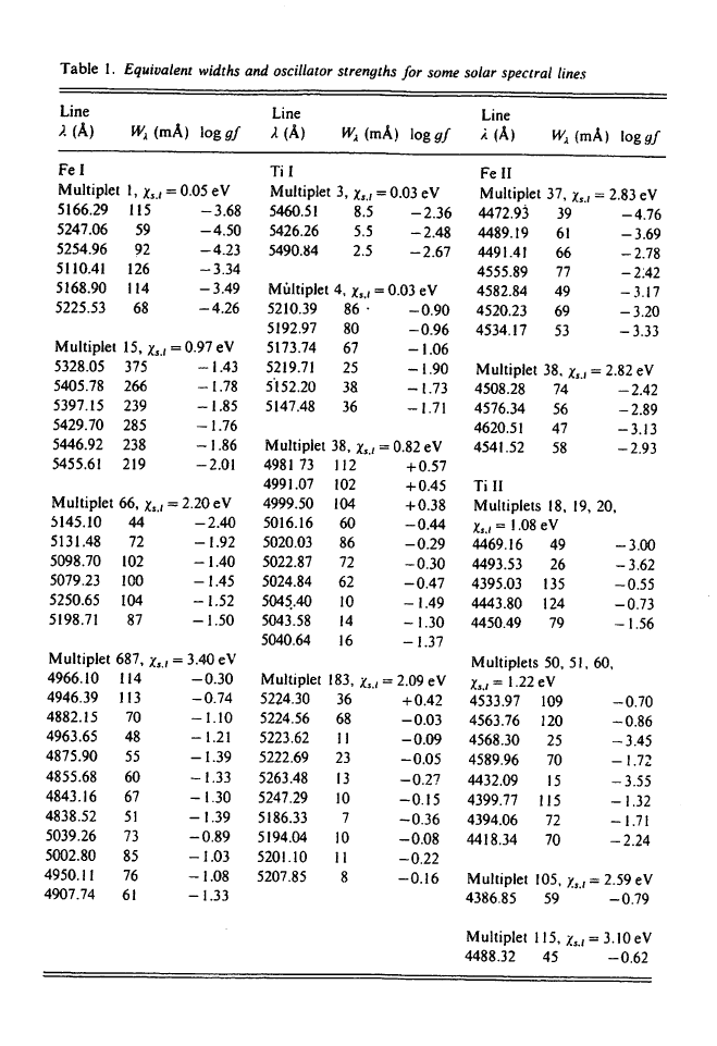 1. In Table 1 we give equivalent width of FeI and Fe | Chegg.com