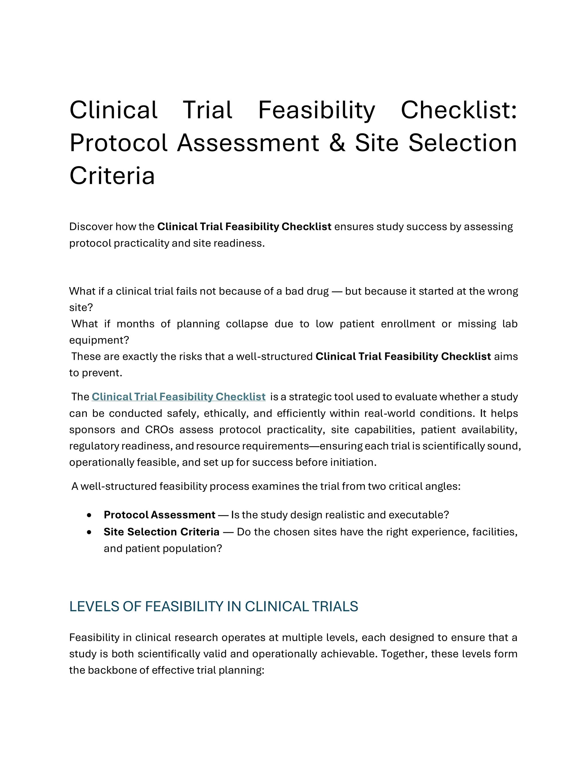 Clinical Trial Feasibility Checklist - Protocol Assessment & Site ...