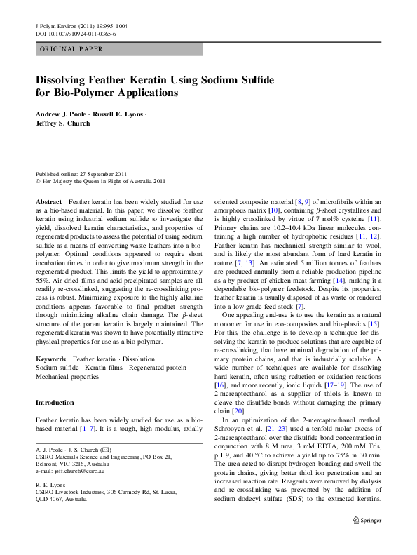 (PDF) Dissolving Feather Keratin Using Sodium Sulfide for Bio-Polymer ...
